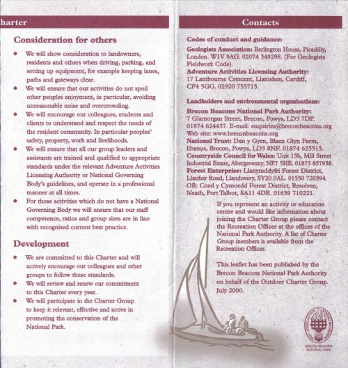 And this is what happened. The charter was no more. No matter. The charter had been worked out, produced as a leaflet and delivered to all activity providers and Wales Outdoors continued to work well within its guidelines.